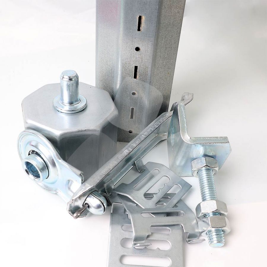 1 rullo zincato tagliato a misura mm.60, 1 calotta zincata per rullo da mm.60, 3 ganci a rullo e 1 supporto zincato da murare.