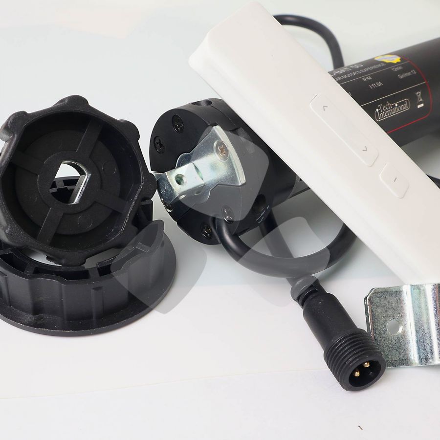 Motore elettrico Tech International nuova serie E-BAT da 20 o 50 NM con BATTERIA ESTERNA al litio ricaricabile, disponibile con diametro 45mm, ideale per TENDE DA SOLE E TAPPARELLE. Il motore è solo a batteria e non ha il filo per il collegamento alla corrente.